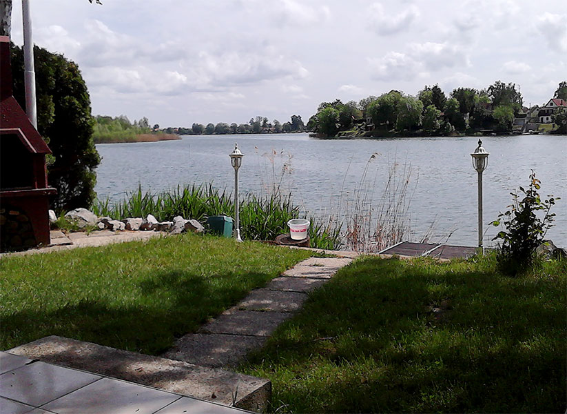 A kert végétol 20m-re az egyik, kb. 200m-re a másik tó ahol stég is van. Strand